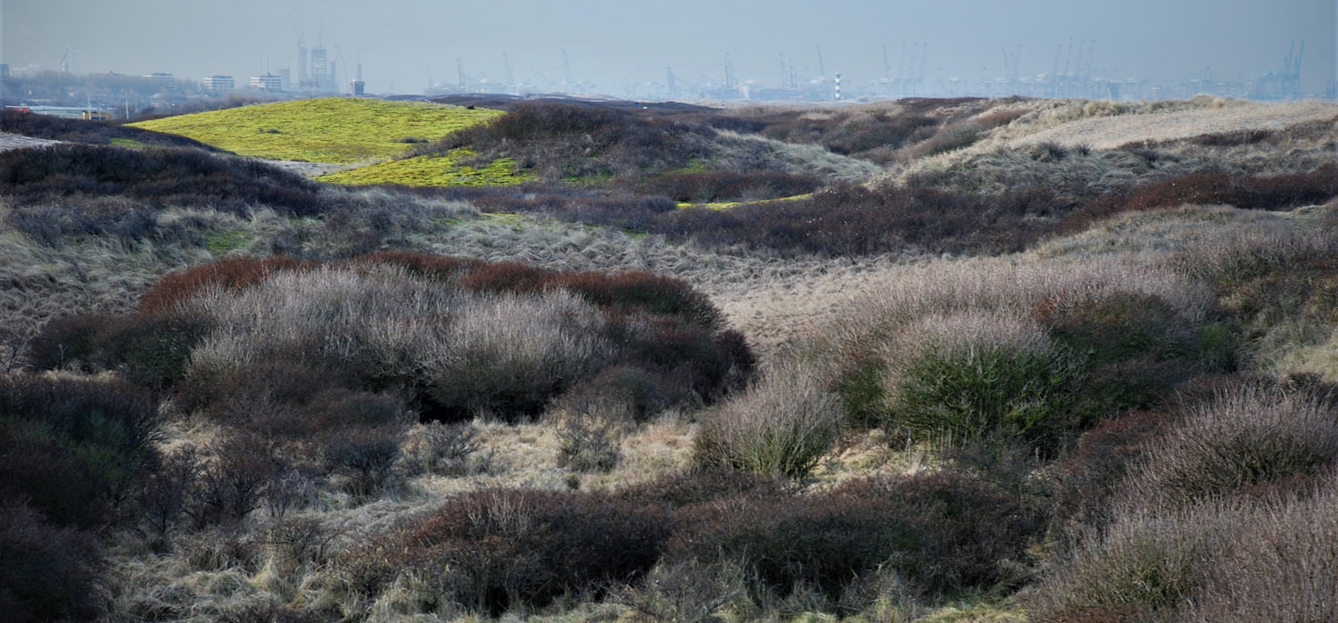 Solleveld & Kapittelduinen. Duinvallei ten zuiden van ter Heijde. In de half open struwelen in duinvalleien leven grote dichtheden van de Nauwe korfslak.