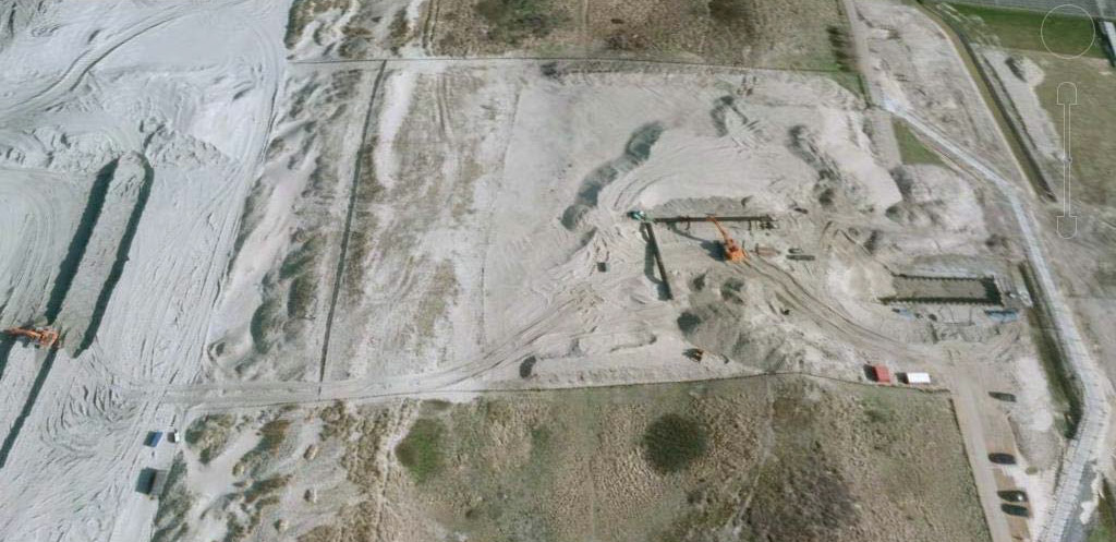 Aanleg persleiding in zeereep van uit de lucht gezien (Bron: Google)