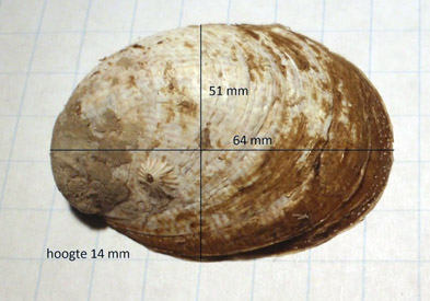 Landelijk grootste soort ingevoerde [exoot] zoetwater-tweekleppige (dbl): L 200 x 170 mm (uit Lit)