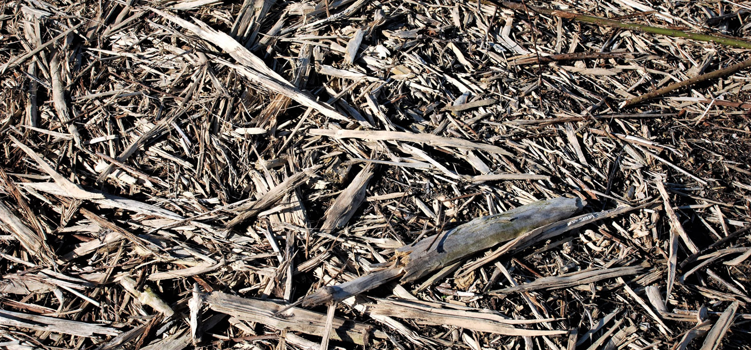 Grootschalig klepelen en afzuigen versnipperde struiken. Een groot areaal