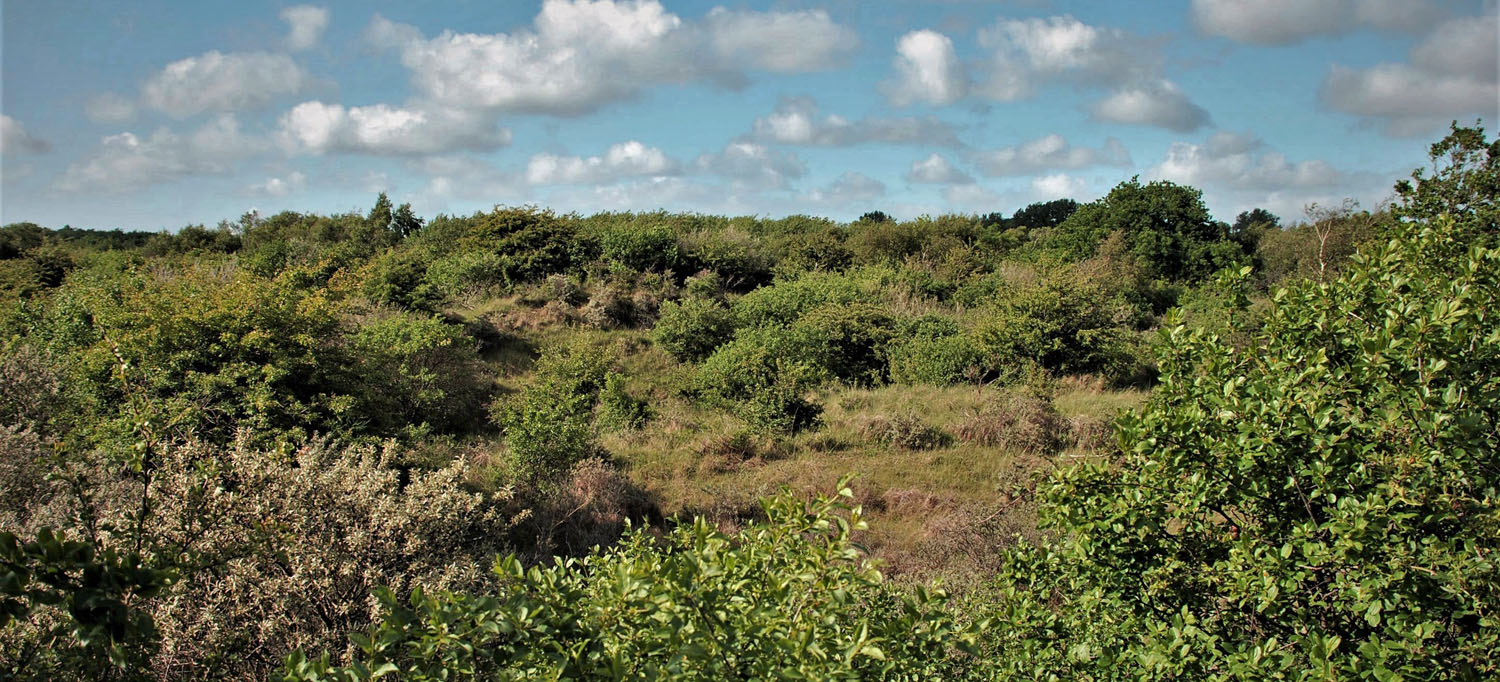 Solleveld & Kapittelduinen. Duinvallei ten zuiden van ter Heijde. In de half open struwelen in duinvalleien leven grote dichtheden van de Nauwe korfslak.