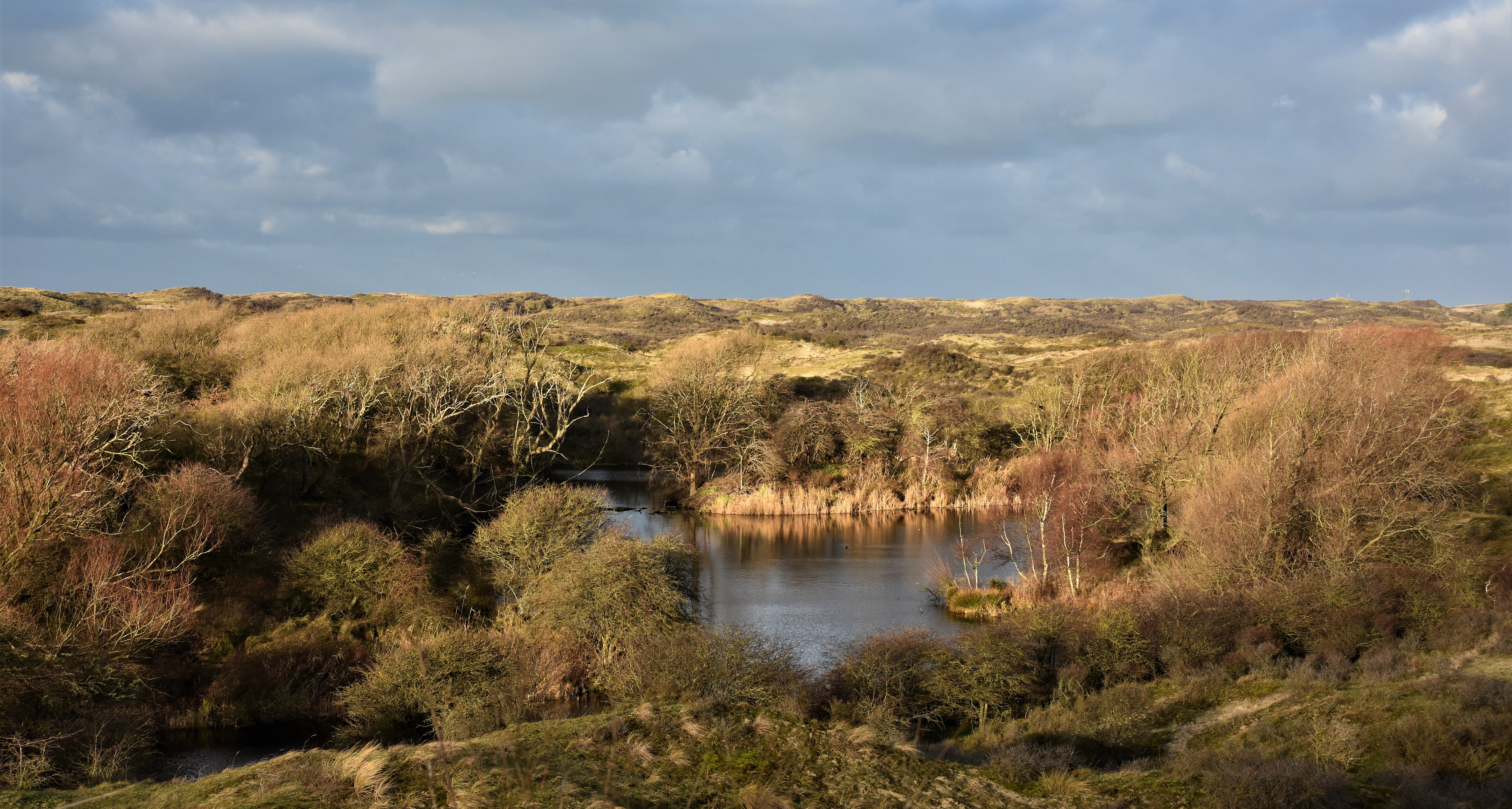 Voornes Duin. Waterbos voor de herinrichting. In de half open srtuwelen van het Waterbos zijn de hoogste dichtheden voor ons land vastgesteld.