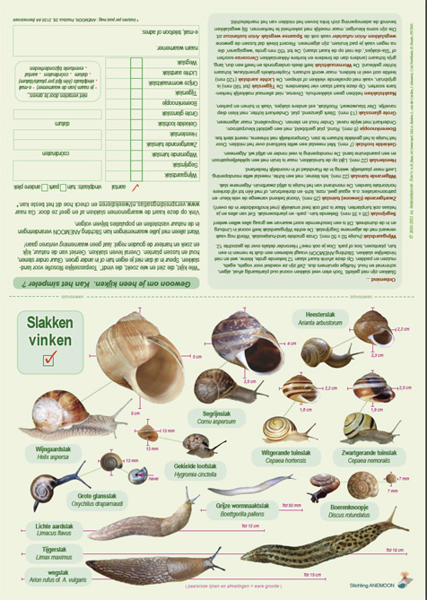 Daarom staat de helft nu gespiegeld. Behalve afbeeldingen en de maten, is er ook beknopte informatie over de twaalf slakken aanwezig.